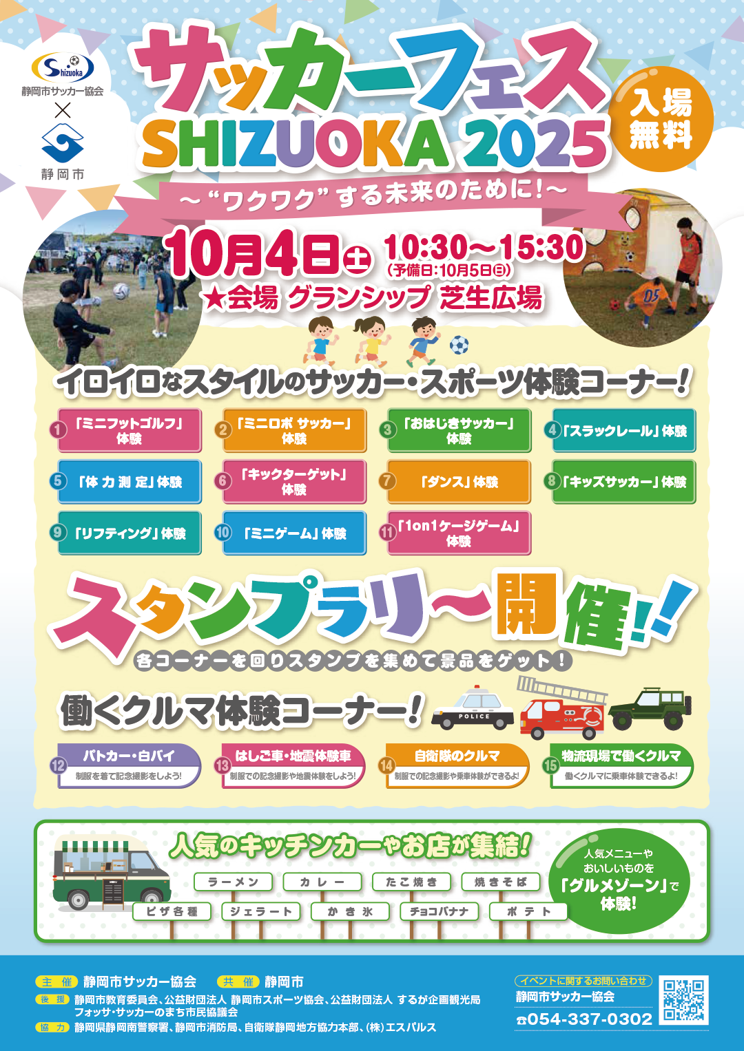 今年も様々なスタイルのサッカーを体験できる「サッカーフェスSHIZUOKA 2025」が10月4日(土) / 予備日5日(日)
