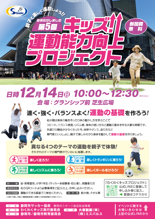 12月14日(日)グランシップ芝生広場にて「キッズ運動能力向上プロジェクト」が開催されます。