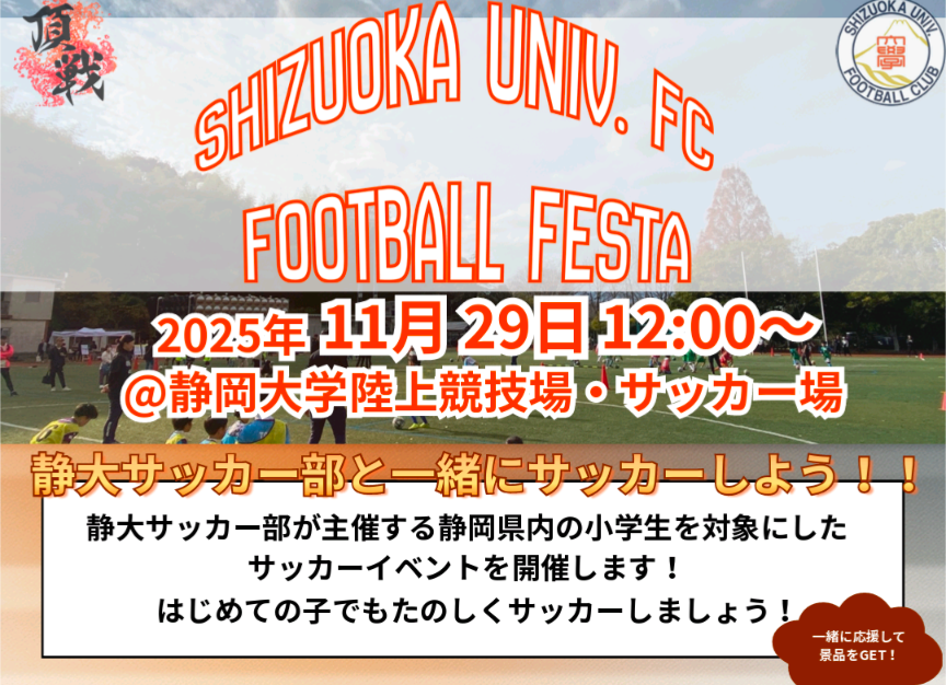 11月29日(土)12:00〜 静岡大学陸上競技場・サッカー場にて、