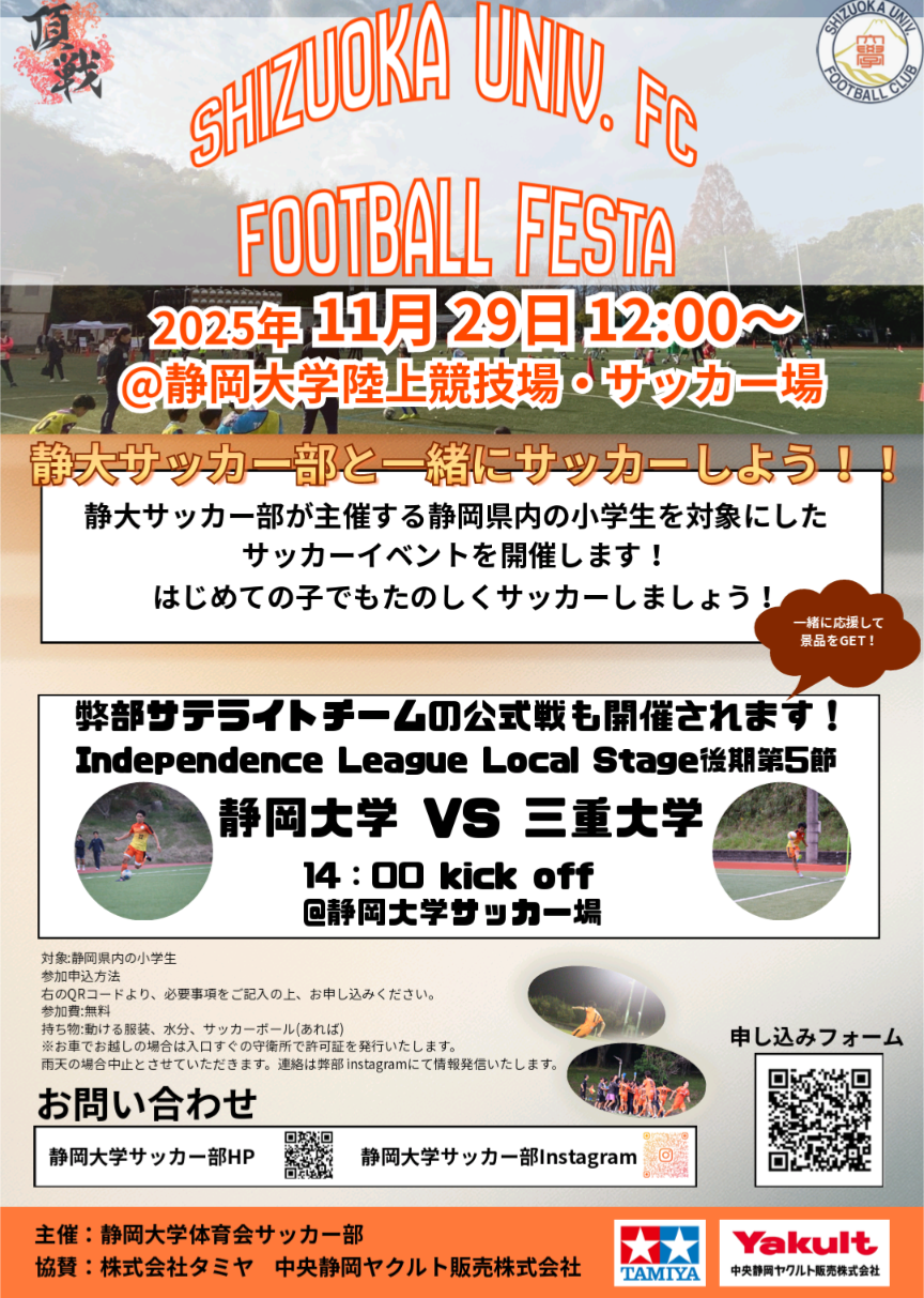 当日はサテライトチーム公式戦(静岡大学 vs 三重大学)も開催!